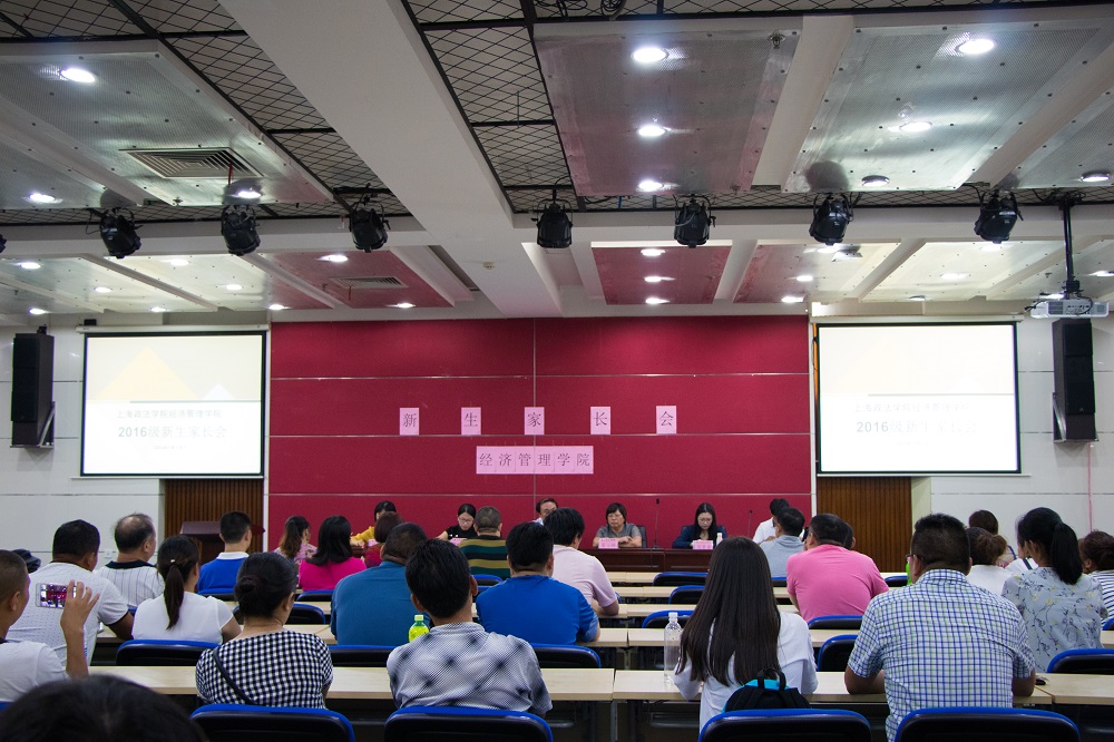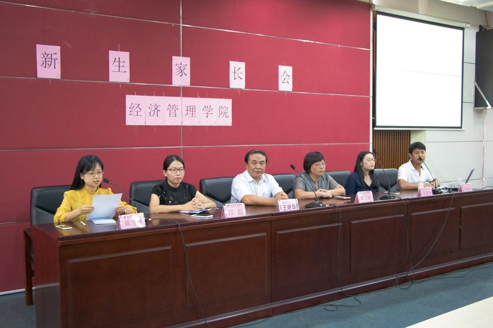 2016年9月3、4日下午14:00,经济管理学院于信教101分别召开2场新生家长会,院长王明华教授、党总支书记姜玉卿、党总支副书记江晨,分团委书记陈雪婷,辅导员老师吴菲菲、刘俊利来到现场与新生家长们为了学生们的大学生活及未来发展共同商讨,家长会取得了圆满成功。