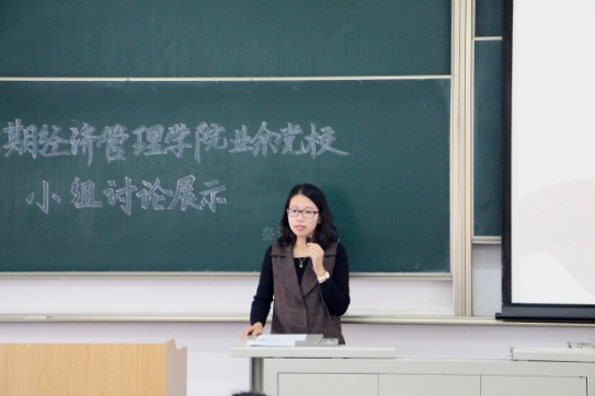 11月1日下午,经管学院第22期入党积极分子培训班第二次理论授课于主教401B顺利举办。本次党课由党总支副书记江晨同志主讲,党建指导老师张勤勤同志和学员们一起参与了本次课程。首先,由江晨同志围绕建立规则化意识、培育政治意识形态、保持自主思维能力和适应大数据时代下的新常态进行了阐述。她强调,当今中国社会以法制化、规则化为主要特征,承担责任是必须具备的意识,同学们不可盲目追求“民主”、“人权”、“多元化”等概念,须建立自主的信仰立场,具备丰富的视野维度,构建自主逻辑思维体系等,做到“心中有家国,眼中有大局”。授课结束后,进入小组课题讨论展示环节。学员们分别针对绿色贸易壁垒对中国的影响及对策、金砖五国、长征胜利80周年、航天工程三步走及“反腐惩恶,正风肃纪”五个主题各自表达了见解看法。学员们运用辩证论述、视频展示等方法充分阐述本组观点,展现了入党积极分子完善的知识结构和心怀家国天下的大格局。最后,党建中心组织部部长梁郐方同学就每组展示内容作精彩点评总结。?xml:namespace>