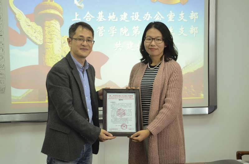 2016年11月4日中午,上合基地建设办支部与经济管理学院第二学生党支部共建仪式在主教509C顺利举行。经济管理学院党总支副书记江晨同志、上合基地建设办公室党支部成员、经济管理学院党建指导老师张勤勤同志、经济管理学院第二学生党支部党员一同出席了共建仪式。