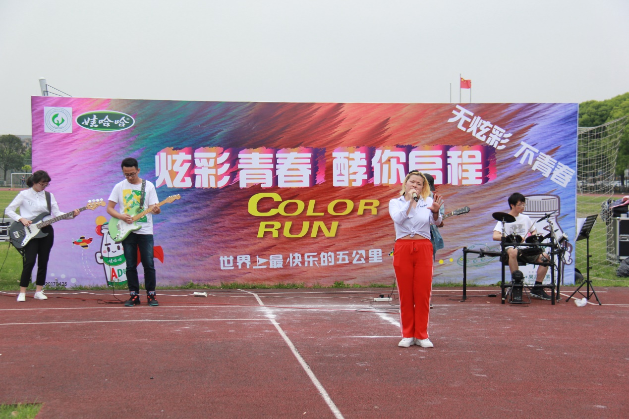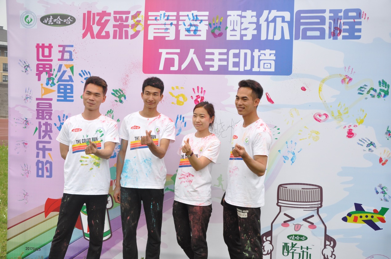 活动以学校somnus乐队的一首《污泥》拉开序幕。欣赏了乐队的演出,同学们开始领取彩粉、便迫不及待地为自己或好友的T恤添上一道又一道的彩虹。随着发令枪响,伴随着漫天飞舞的彩粉,同学们在领跑员的带领下踏上了活动的固定路线,在阳光与微风中将这份快乐与青春分享给每一位上政学子。活动路线上设置了补给点,经过了一段路程奔跑的同学们不仅获得了饮料,还可以领取彩粉和印章。补给点的工作人员们也撒出手中的彩粉,为同学们身上的彩虹着上一笔。跑完全程的选手们回到操场在手印墙处印下手印并合影留念。