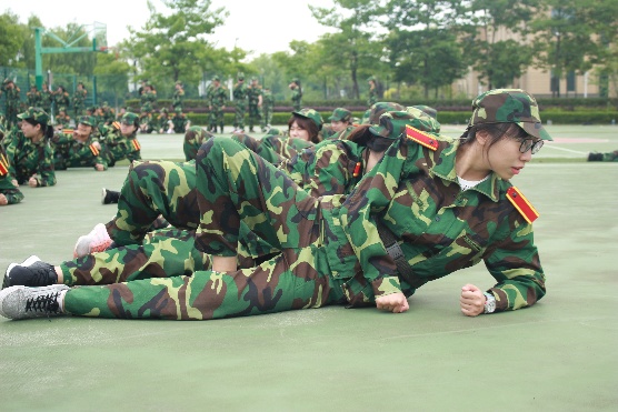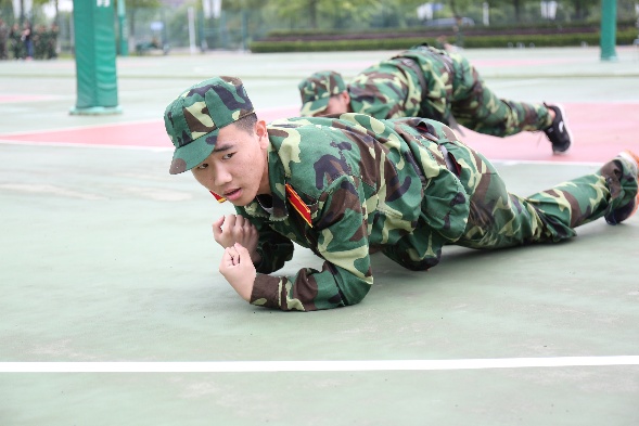 虽然一开始的学习,同学们的动作都不尽标准,但在大家刻苦努力的练习和教官孜孜不倦的示范中,匍匐前进的技能都得到了不小的提高。草坪受晨起朝露滋润是潮湿的,场地在烈日的暴晒下是滚烫的,但这些丝毫没有阻碍同学们练习的进度。哪怕擦破了皮,流了血,同学们每每想起真实战场上艰苦奋斗的战士,便咬紧牙关坚持着!