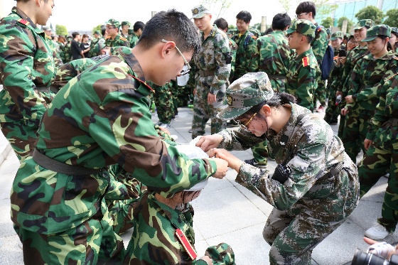 在训练结束后,每排派出5名代表,进行了匍匐前进的接力比赛,检验他们练习的成果。每排同学为参加学员的加油声响彻操场.加油!加油!一声高过一声,穿过我们坚韧刚强的身体,直击内心深处最柔软的感动。经管青年,不服输!经管青年,打响野外生存“第一枪”,加油!(孙沁瑶、张佳妮撰稿 孙沁瑶、张佳妮、梁巍文摄影)