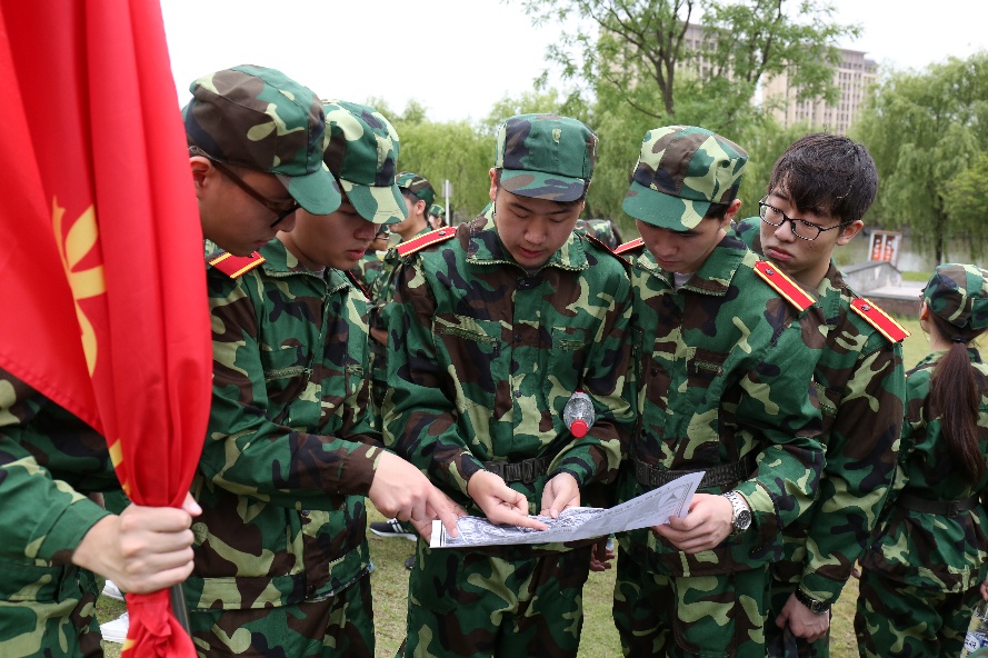 学员们接到的第一项任务是“按图行进找点”的定向越野。教官为大家讲解了看图技巧后,由同学分组按照图片指示,限时一个小时寻找隐藏的目标。