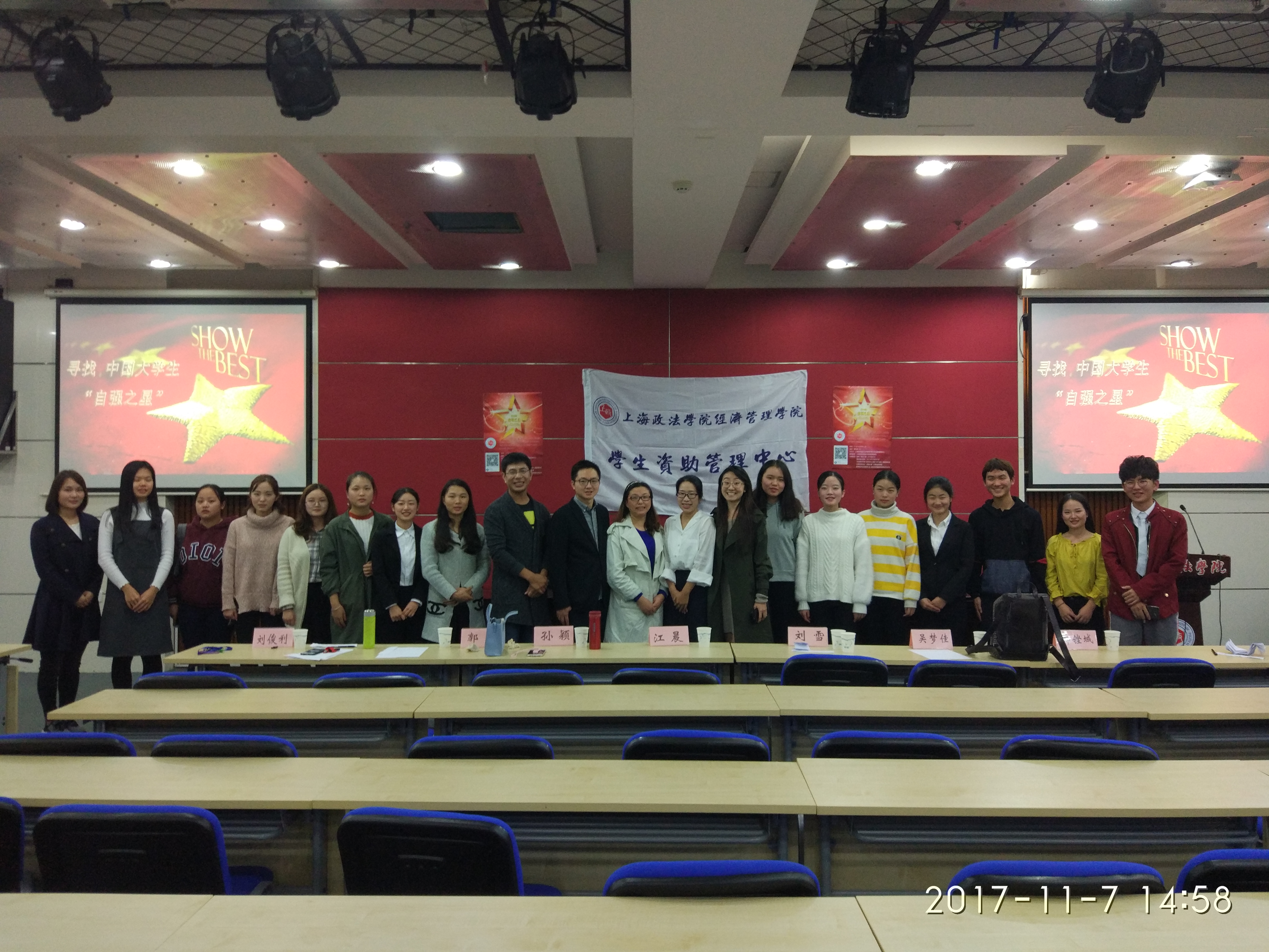 11月7日,新利18官方客服经济管理学院“自强之星”评选及颁奖仪式在庸夫楼101顺利举行。经管学院党总支副书记江晨出席活动并致开幕词,辅导员孙颖老师、郭平老师、刘雪老师、吴梦佳老师,刘俊利老师、资助中心主席郑铿城担任评委,来自各学院的100多名学生代表观看了本次比赛。