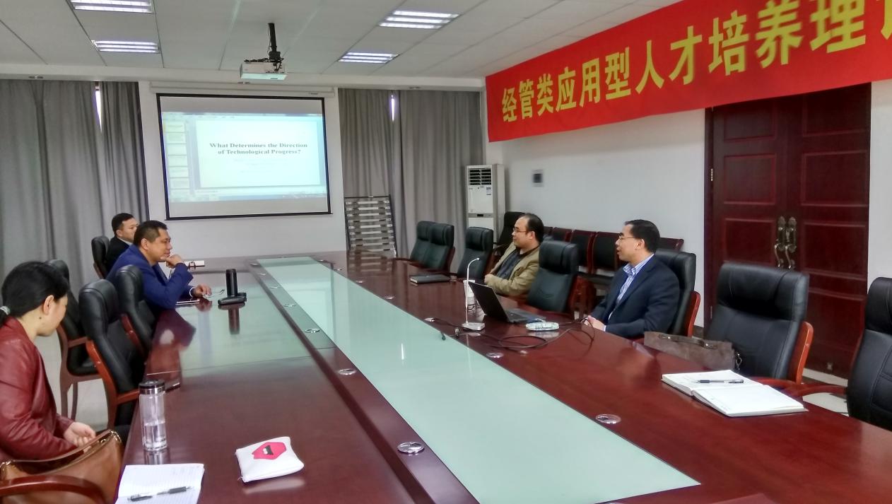 11月15日下午,同济大学经济与管理学院黎德福博士应邀到我校经济管理学院作了主题为“什么决定技术进步方向”的学术讲座。讲座由经管学院刘宪副院长主持,经管学院、社会管理学院和国际事务与公共管理学院部分老师参加了此次讲座。