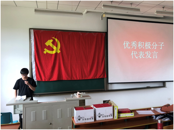 到了第二环节,结业典礼正式开始,由主持人带领全体师生起立并奏唱国歌。紧接着,由优秀学生代表上台发言。他表示党课时间虽短,但收益颇多。课程中他提高了对党组织的认识,加深了理论水平与思想认识,明确了作为党员的责任、光荣与自身不足,在活动中体会到了党员的伟大与美好生活的来之不易,在今后的生活中,也会以党员标准严格要求自己,时刻关注国家大事,树立坚定共产主义信念,也要努力学习专业知识,为未来打下坚实基础,以自己的力量为社会做出贡献。