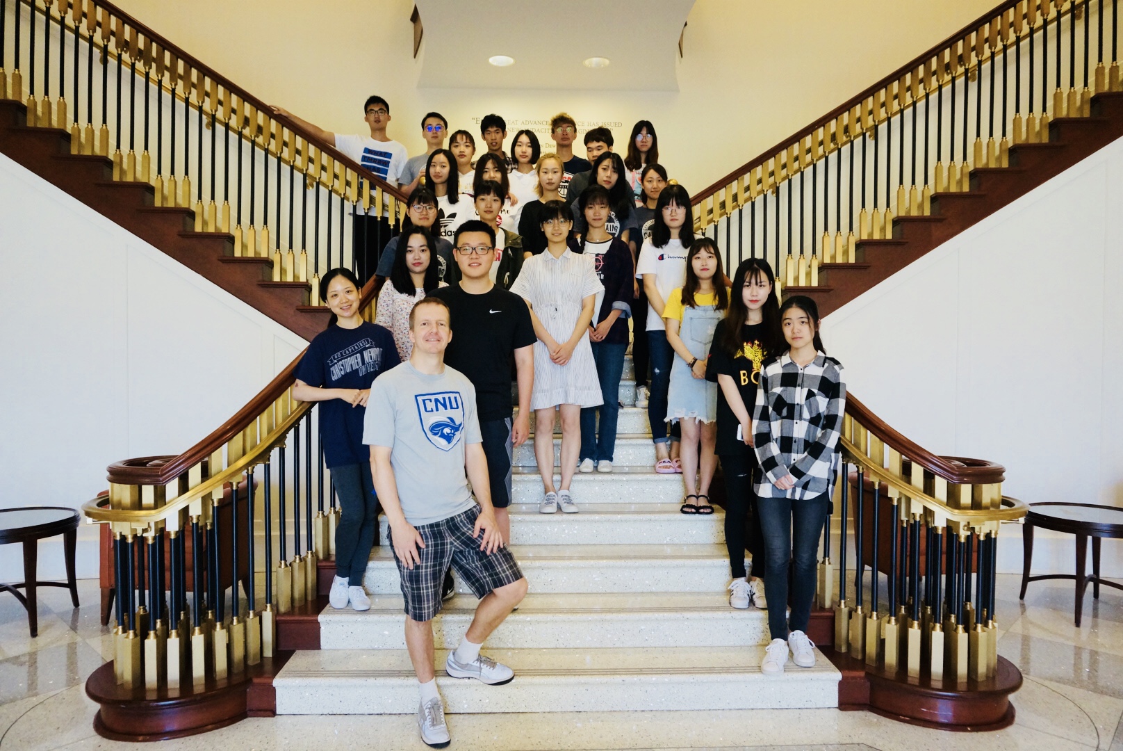 北京时间6月22日,我们和两位老师一同踏上了前往美国Christopher Newport University的征途,经过了长时间的飞行到达目的地时已是晚上。走在校园的小路上,空气中萦绕着雨后青草的气息,在CNU为我们准备的干净的寝室进行休整了一夜后才开始正真的学习交流生活。