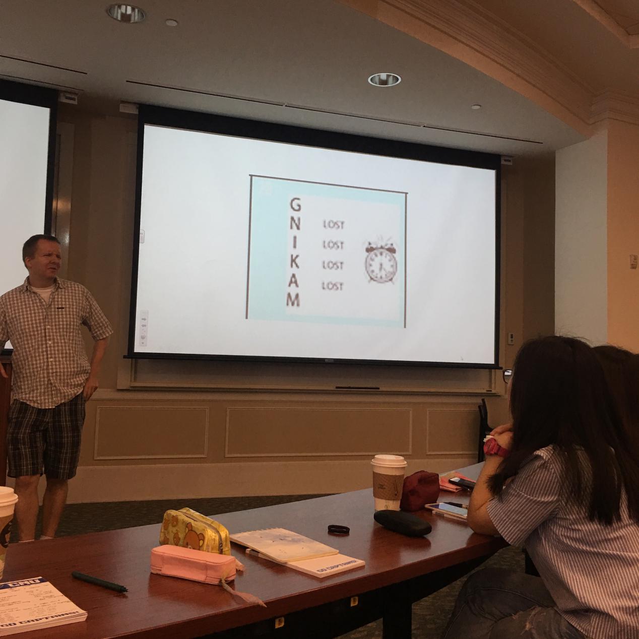 每天一半时间的纯英文课程学习让我收获了很多,不仅提高了自身英语水平,还学习了专业知识与技能.我很喜欢英语文化和美国商业课程的学习,语言课老师总是会带领我们以小组为单位做有趣的竞赛。