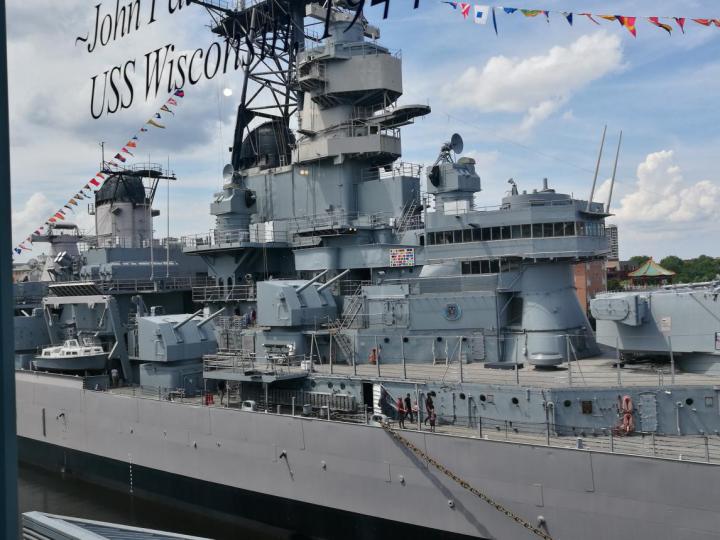 学习之外,还有很多漂亮并且有意义的景点。在诺福克博物馆中我看到了威斯康星战舰,据介绍威斯康星号是爱荷华级战列舰的四号舰,主要为盟军舰队提供强大的火力支援,参与过进攻日本的多次战役。