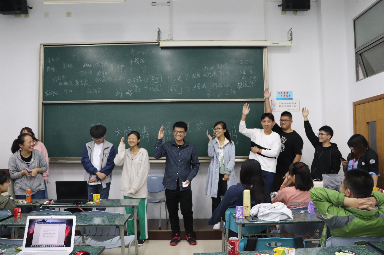 活动进入第二环节,由策划部部长韩家琳组织各部门成员进行破冰游戏。首先,同学们组织了游戏 “你比我猜”,全体成员欢笑不断,彼此配合。随后,同学们又进行了游戏“谁是卧底”,全体成员均积极参与,热情高涨。