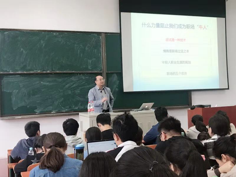 在一个半小时的讲座中,杨孝全先生结合自己多年从业经验,从面试是一种技术、情商是职场立足之本、年轻人职业生涯规划、职场五个忠告四个大方面,并结合能力素质、了解企业需求、情商、认知自己等要点深入浅出地为同学们阐述职场牛人的必备条件与素质,并为同学们的职业规划提出了全新的高度。