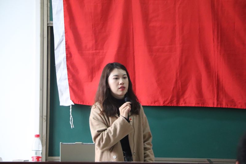 活动尾声,徐璐老师讲授了习总书记精神专题,介绍了习主席的早年经历、吃苦耐劳的精神和对共产党工作建设的全身心投入,表明了习总书记对当代大学生抱以深切希望。同学们均积极响应,反响热烈。