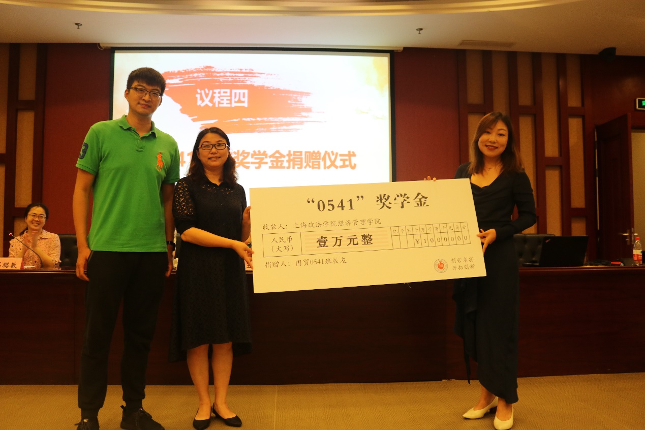 值此院庆之际,国际经济与贸易0541班级同学共同筹资在学院设立“0541班”奖学金,用于鼓励经管品学兼优的学子们。刘昱明和司意菲同学分别介绍0541奖学金设立宗旨和奖励标准并代表班级同学发言,他们希望能够通过这样一种形式鼓励优秀经管学生自强不息、勇于创新,圆满完成学业。随后学院校友会负责人孙颖老师代表学院接受捐赠,并向捐赠班级代表颁发了捐赠证书。
