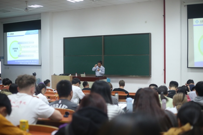 在与同学们的提问交流环节中,同学们就从业心得,投资偏好以及大学生是否应该参与证券投资等方面进行提问,陈总经理耐心地解答了同学们的问题。并指出“道路是曲折的,但前途是光明的”,证券市场的制度一定会越来越规范化。而大学生要把专业知识学精、学透,在有余力及闲散资金的情况下,再考虑证券投资,股票投资的过程要做到由浅入深,由小到大,由低风险到高风险。通过此次讲座,增加了同学们对我国证券市场的基本特点的了解,并对如何进行证券投资有了初步的认识,更是坚定了学习生活中“学精、学透”的决心。此次讲座在一片热烈的掌声中圆满结束。