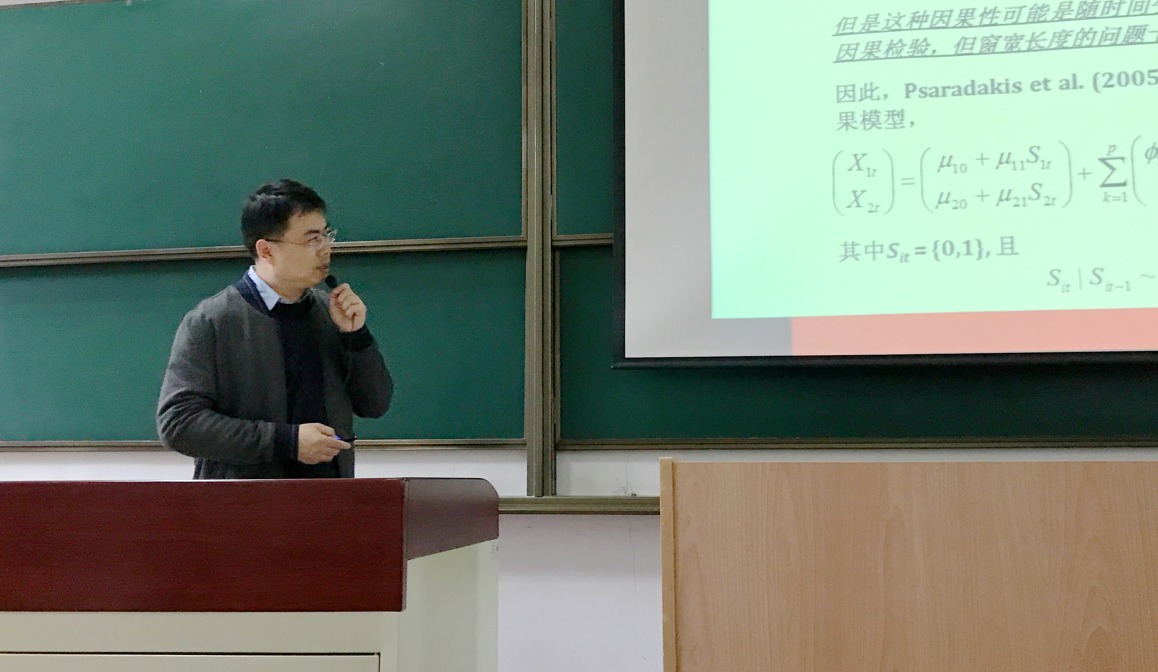2019年11月21日下午,新利18官方客服庆祝建校三十五周年系列学术活动前沿讲坛第13讲在法学楼B4-104开展,应我校经济管理学院邀请,厦门大学特聘教授、教育部长江学者青年学者郑挺国教授为我校师生做了题为“宏观计量经济学的研究问题与方法”的讲座。讲座由经济管理学院院长刘志强教授主持,部分学院老师、学院全体研究生及经济与金融专业本科生参与聆听。