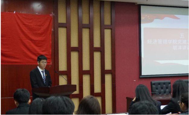 经济管理学院党建工作中心副部长代表梁欣蕊同学、干事代表任文彧同学相继发言。