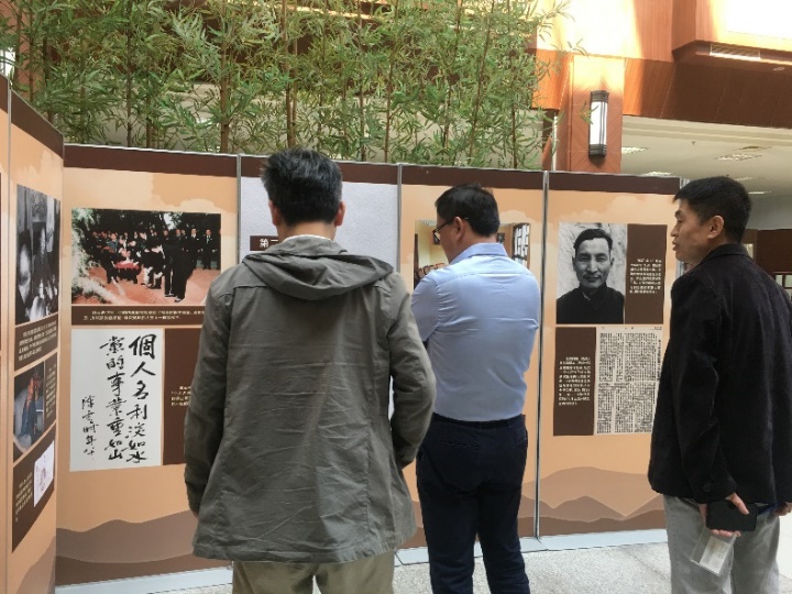 陈云专题展”设立在图书馆一楼中庭,展览通过“坚定理想信念”、“坚强党性原则”、“求真务实作风”、“朴素公仆情怀”、“勤奋学习精神”这五个部分,以详实的图片资料,生动的语言文字,展示了陈云同志的生平业绩和奋斗历程,以及他崇高的风范和高尚的品格。