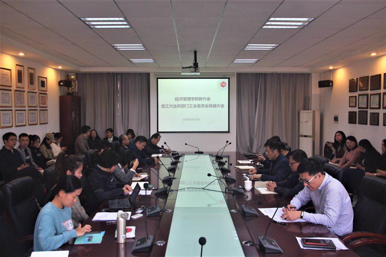 2020年10月27日,经济管理学院在A3-201会议室召开学院教代会,并进行学院工会委员会换届选举大会。经济管理学院全体班子成员、教职员工49人参加了会议。会议由党支总副支书记徐海琨老师主持。