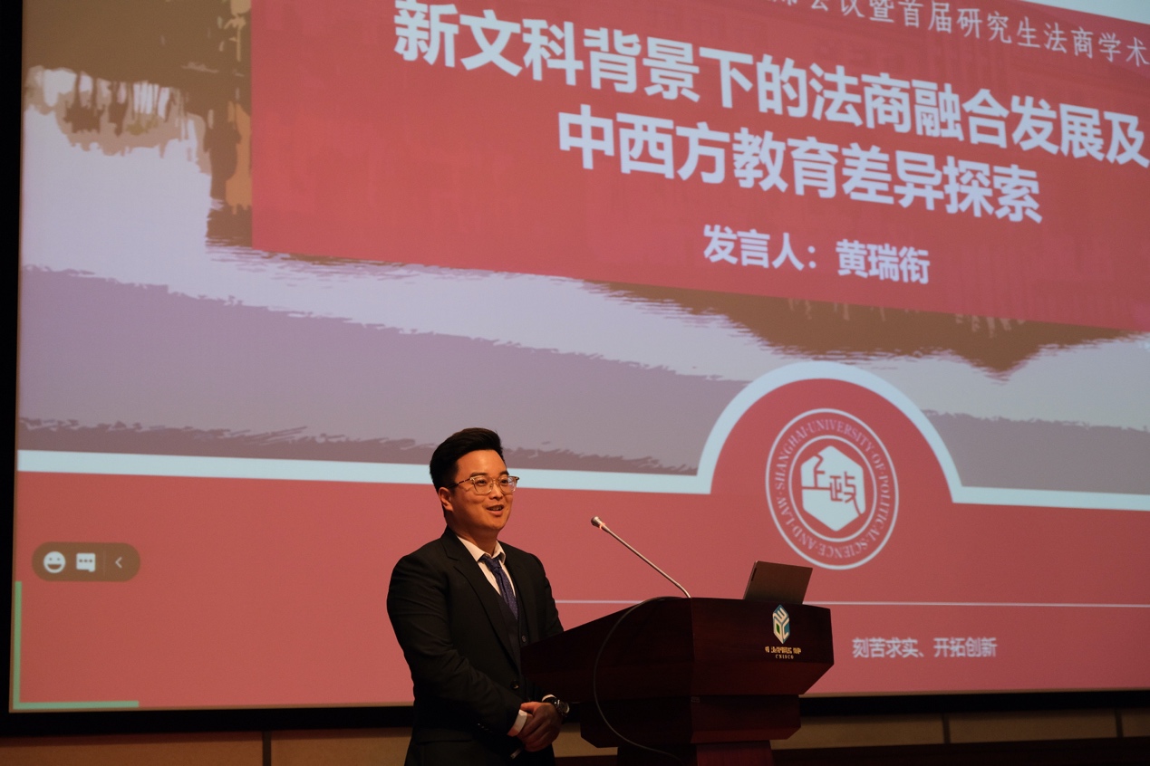 华东政法大学商学院特聘副研究员黄瑞衔围绕“新文科背景下的法商融合发展及中西方教育差异探索”主题进行报告发言。黄瑞衔就《新文科建设宣言》,提出自己的几点思考。提升综合国力需要新文科,一个国家的发展水平,既取决于自然科学发展水平,也取决于哲学社会科学发展水平,他强调哲学学科对新文科建设具有重要教育意义。演讲最后,他引用“今天的世界惟科技马首是瞻,人格养成没有了,都是乱的不成器的,教育只是贩卖知识,这是根本乱源,是苦恼之源。只有科学、科技、哲学、宗教、文艺、人格养成教育回归一体,回归本位,均衡发展,才有希望。”,引发大家对于新文科建设进一步思考。