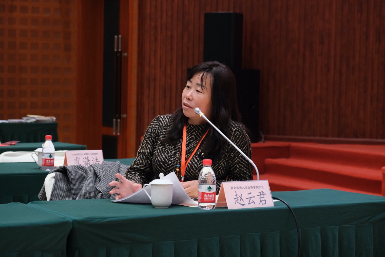 西北政法大学经济学院赵云君院长立足西北政法大学经济学院实际情况,介绍了目前学院构建“经法结合”为特色的课程教学体系和实践教学体系。赵院长认为,“经法结合”的特色复合型人才培养方案一定要以“市场需求”为导向;同时依托学科优势,构建“经法结合”为特色的课程教学体系;以“综合能力”为目标,构建“经法结合”特色的实践教学体系;以“综合能力”为目标,构建“经法结合”特色的实践教学体系;以科研促教学,鼓励开展“经法结合”特色的科研活动。
