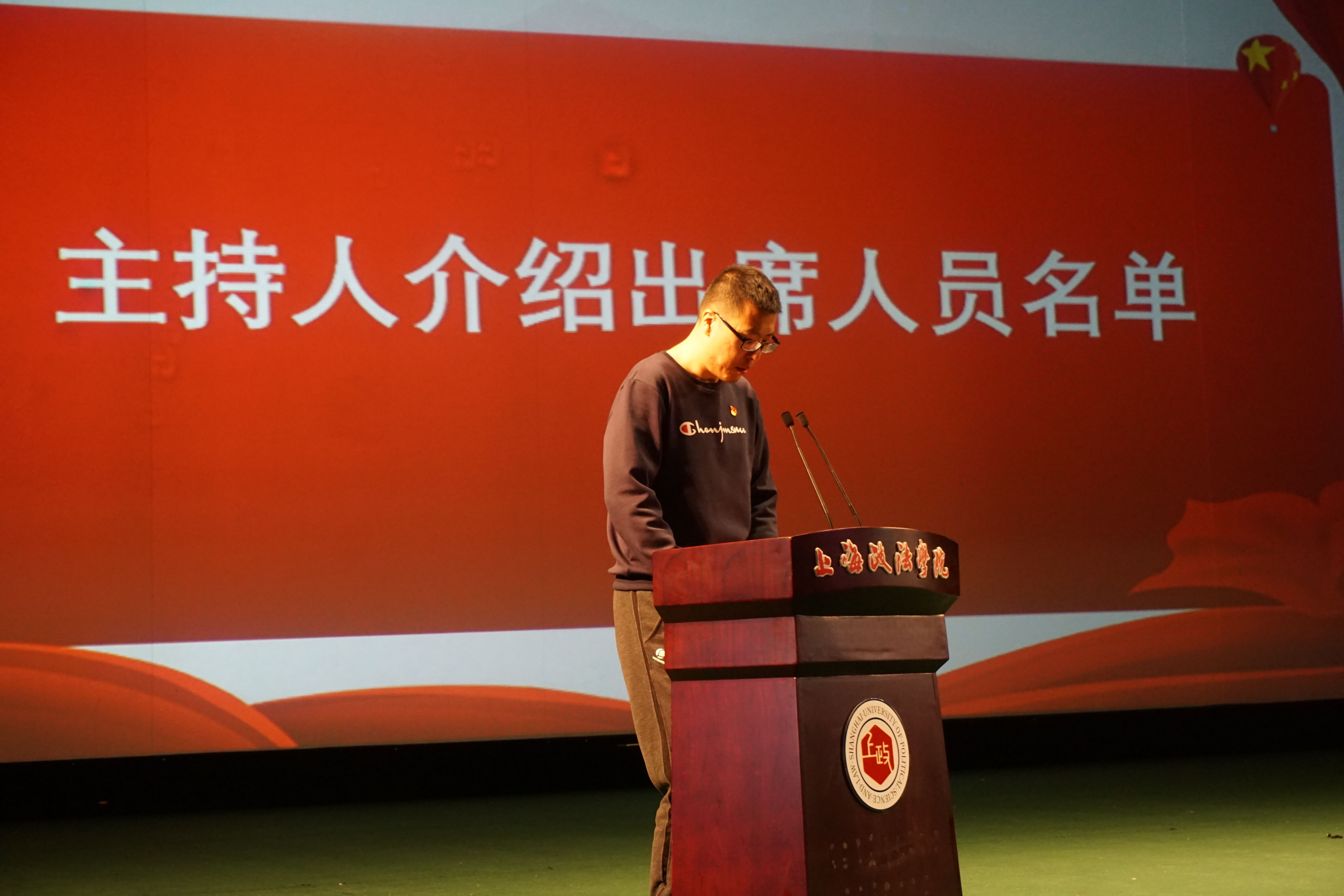 预备党员上政第25学生党支部胡涬同志发言。胡涬同志代表所有的预备党员,向培养考察他们的党组织、党员同志和各位老师表示了由衷的感谢。随后,他联系了自己过去的经历,从而认识到党员不是一份荣誉,而是一份责任与使命。接着,他代表54名预备党员向党组织表态。今后,他们会“发挥出作为学生党员的先锋模范作用,贯彻党全心全意为人民服务的宗旨,早日实现自己在思想上、行动上、能力上全方位入党,以优秀党员为榜样,不忘初心、砥砺前行!”
