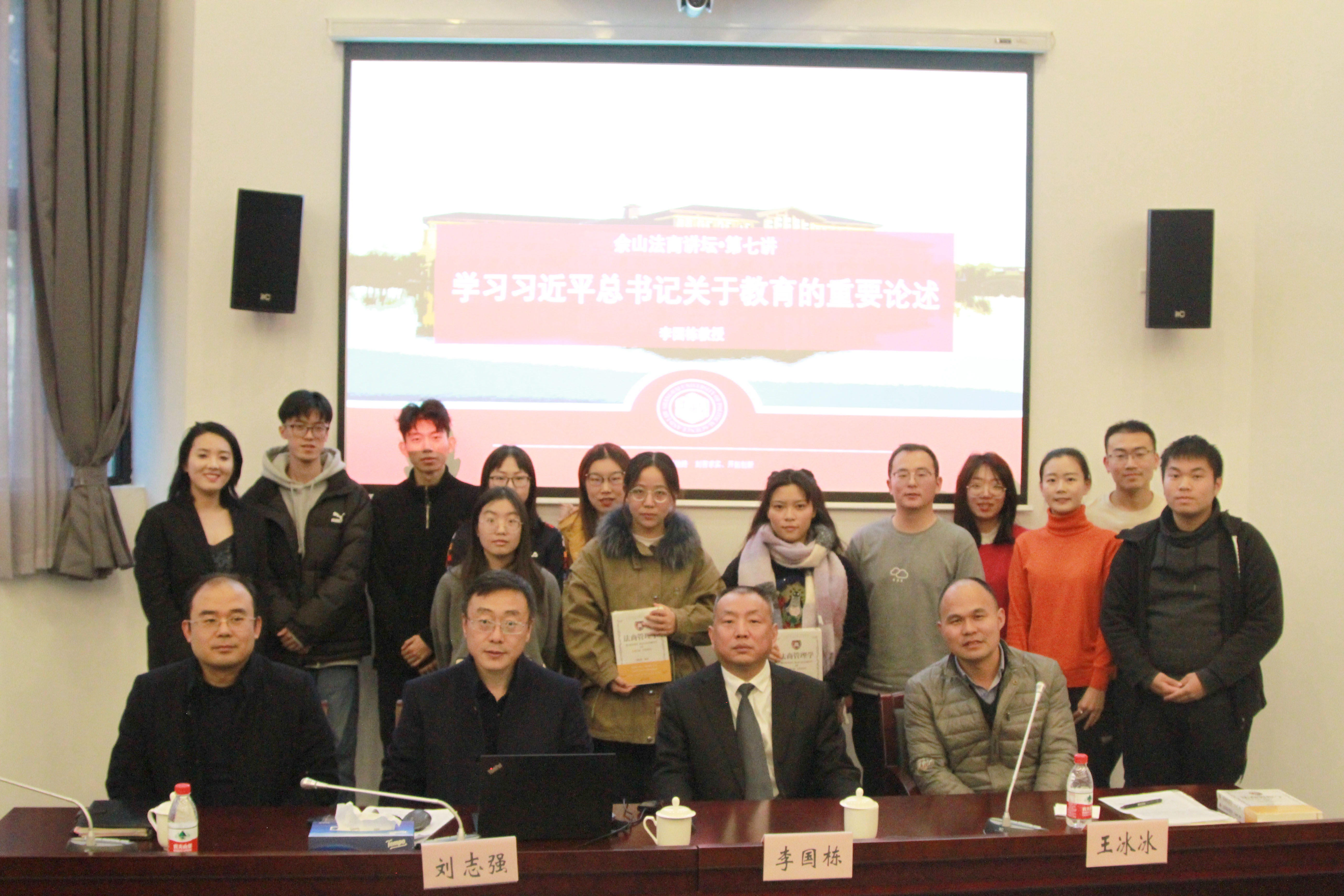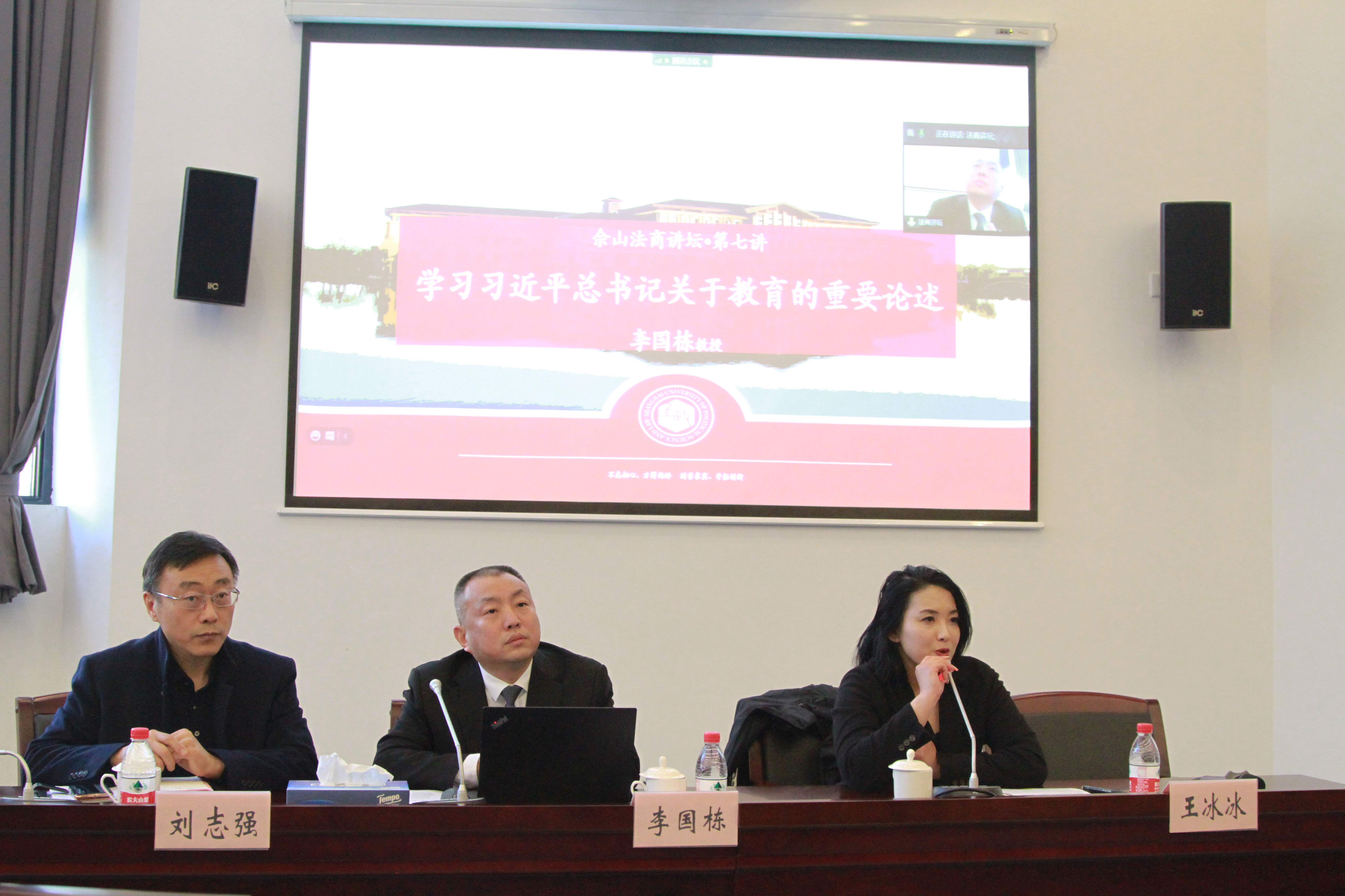 12月15日下午,我校佘山法商讲坛第七讲在上合基地通过线下线上相结合的方式成功举行。烟台大学马克思主义学院院长、烟台大学学报编辑部主任,山 东省社科联“党的十九大精神”宣讲专家,华东师范大学马克思主义学院挂职副院长,法学博士,硕士生导师李国栋教授应邀来我校,为我校师生作了题为“学习习近平总书记关于教育的重要论述”的主题讲座。本次论坛由新利18官方客服经济管理学院主办,新利18官方客服研究生处协办,经济管理学院王冰冰老师主持。