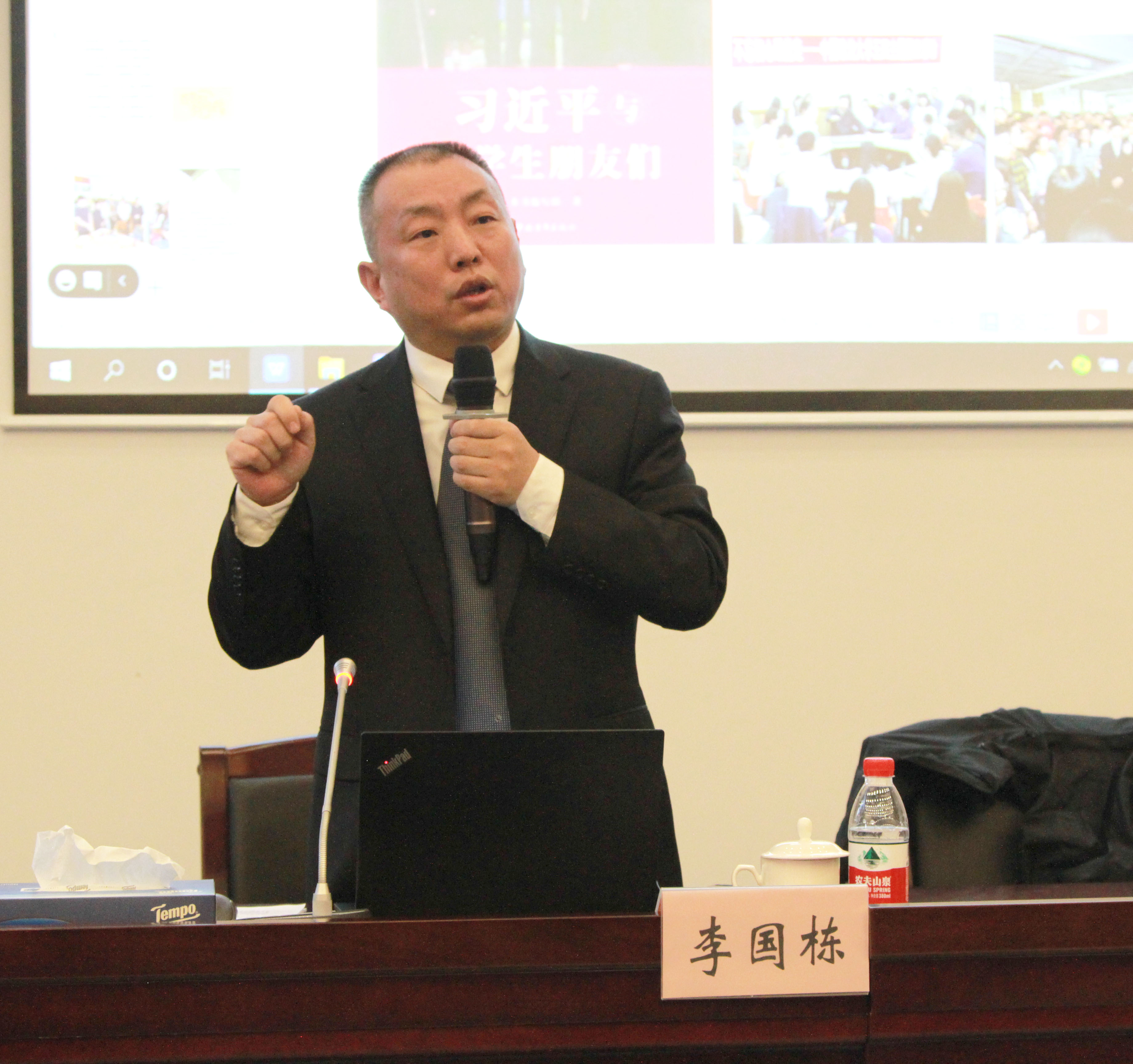 李国栋教授紧扣《习近平与大学生朋友们》一书,围绕习近平总书记在全国教育大会上的讲话中提出的关于教育的“首要问题”和立德树人的“根本任务”的重要论断展开阐述,向大家分享了他的主张与见解。