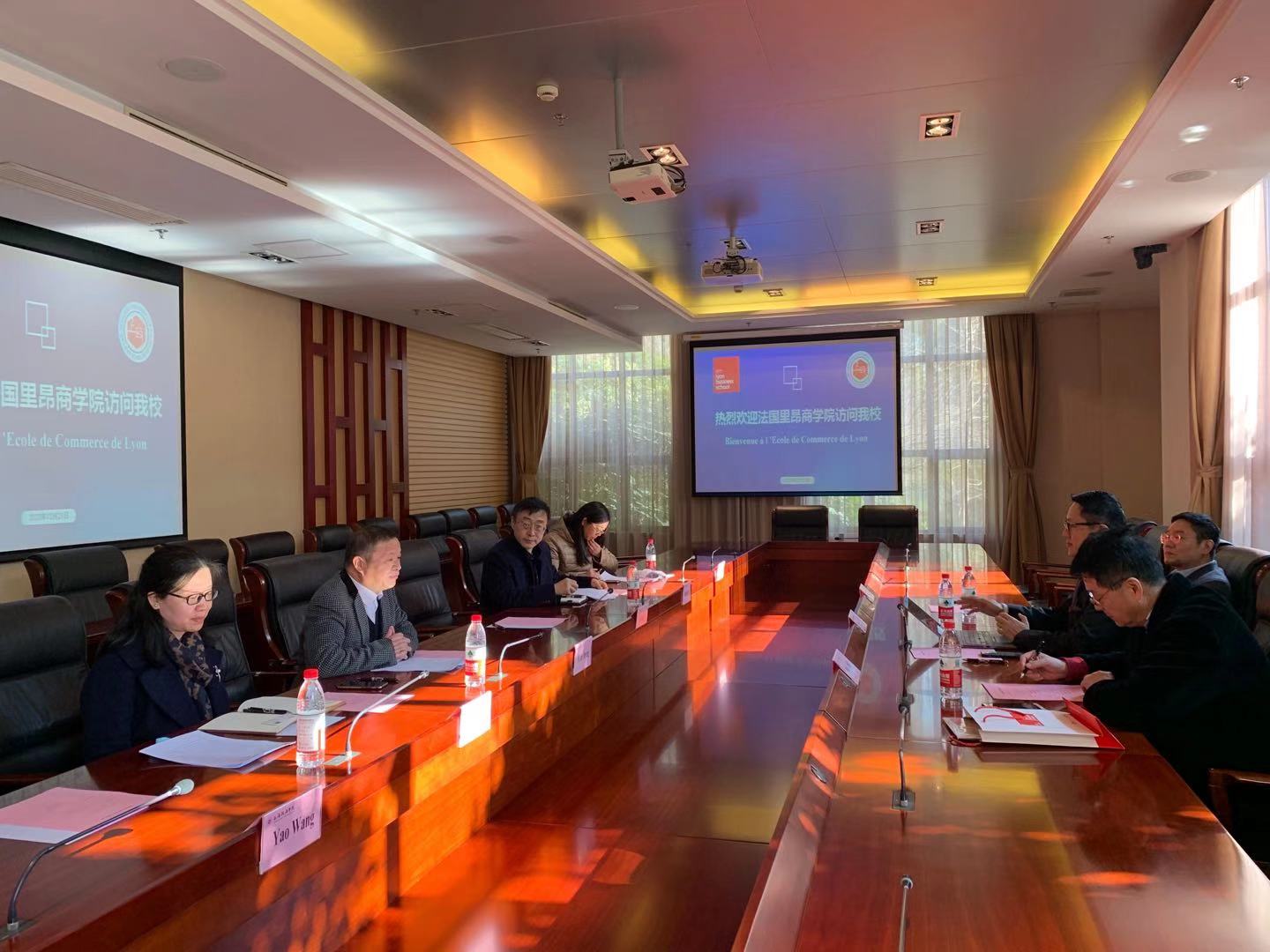 2020年12月21日,法国里昂商学院副校长、亚洲校区校长王华,法国里昂商学院教授、顾问林桦,法国里昂商学院特聘教授林威访问我校并洽谈合作。校长刘晓红,国际交流处处长、国际交流学院院长欧阳美和,经济管理学院院长刘志强,国际交流处副处长张正怡,经济管理学院教师张洁瑶,国际交流处国际项目主管王瑶等参加会谈。