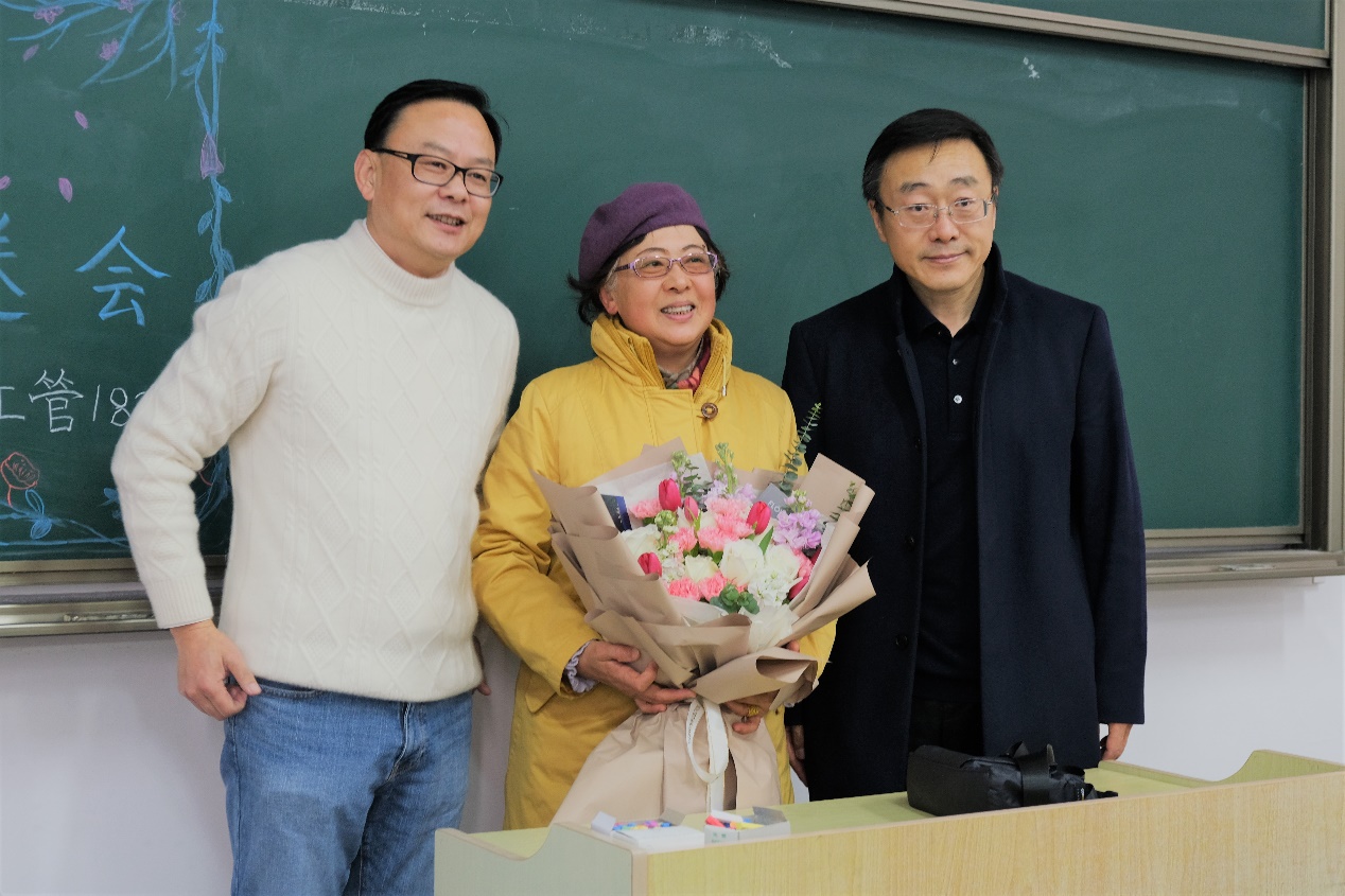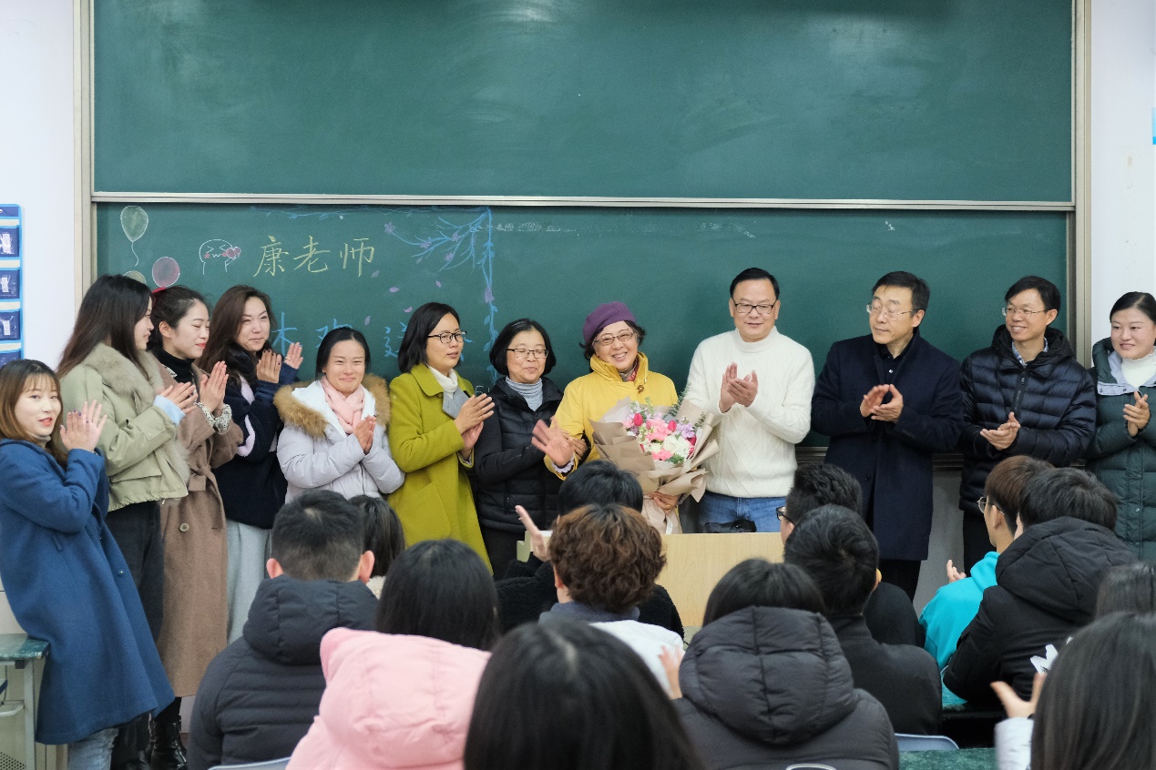 刘志强院长提到,康晓光老师在学校的十六年来,从最早学院还没有完善课程系统,到如今成为人数最多的学院,可以说她将教师生涯最好的时光奉献给了上政,奉献给了经管学院,康老师与同事们一起相遇在上政,奋斗在上政,难忘在上政。他通过回顾经管学院的发展历程,对康老师做出的无私奉献表示深切的感谢。他希望像康老师这样几十年如一日的工作精神能在经管学院一直传承下去。他向康老师祝愿:“在讲台上的时光是永不泯灭的,希望未来康老师能常回学校与我们分享她的这一份快乐。”