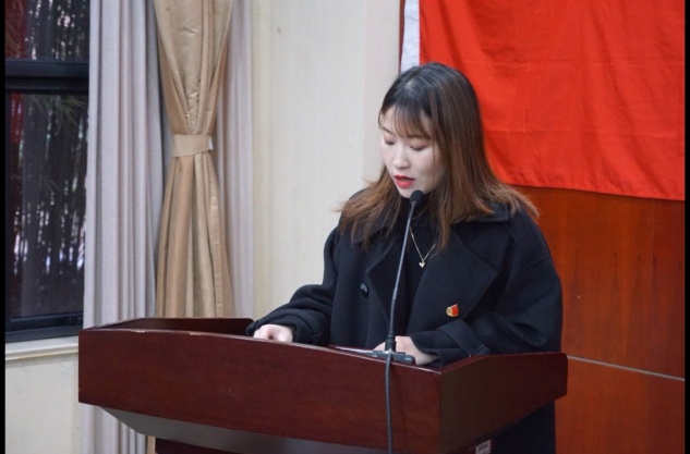 接着,本次发展的预备党员代表上政第25党支部王雪竹发言,她在发言中提到发展党员的过程严格而又漫长,在这一路走来各位预备党员都经受了一道一道的考验,但也在这过程中不断地成长,入党宣誓仪式对于刚刚加入党组织的同志来说是最激动人心的时刻,是他们成长的新起点,加入党组织仅仅是共产党员迈出万里长征的第一步,在今后更要时刻按照党员的标准严格要求自己,不忘初心、牢记使命。