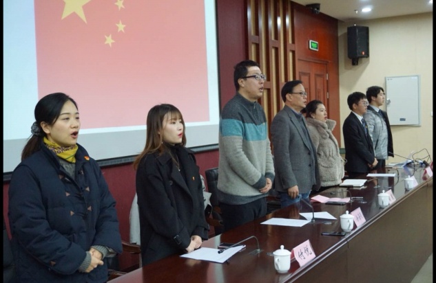 首先,全体起立奏唱《中华人民共和国国歌》。奏唱结束后,优秀党员代表、上政第25学生党支部胡涬发言。