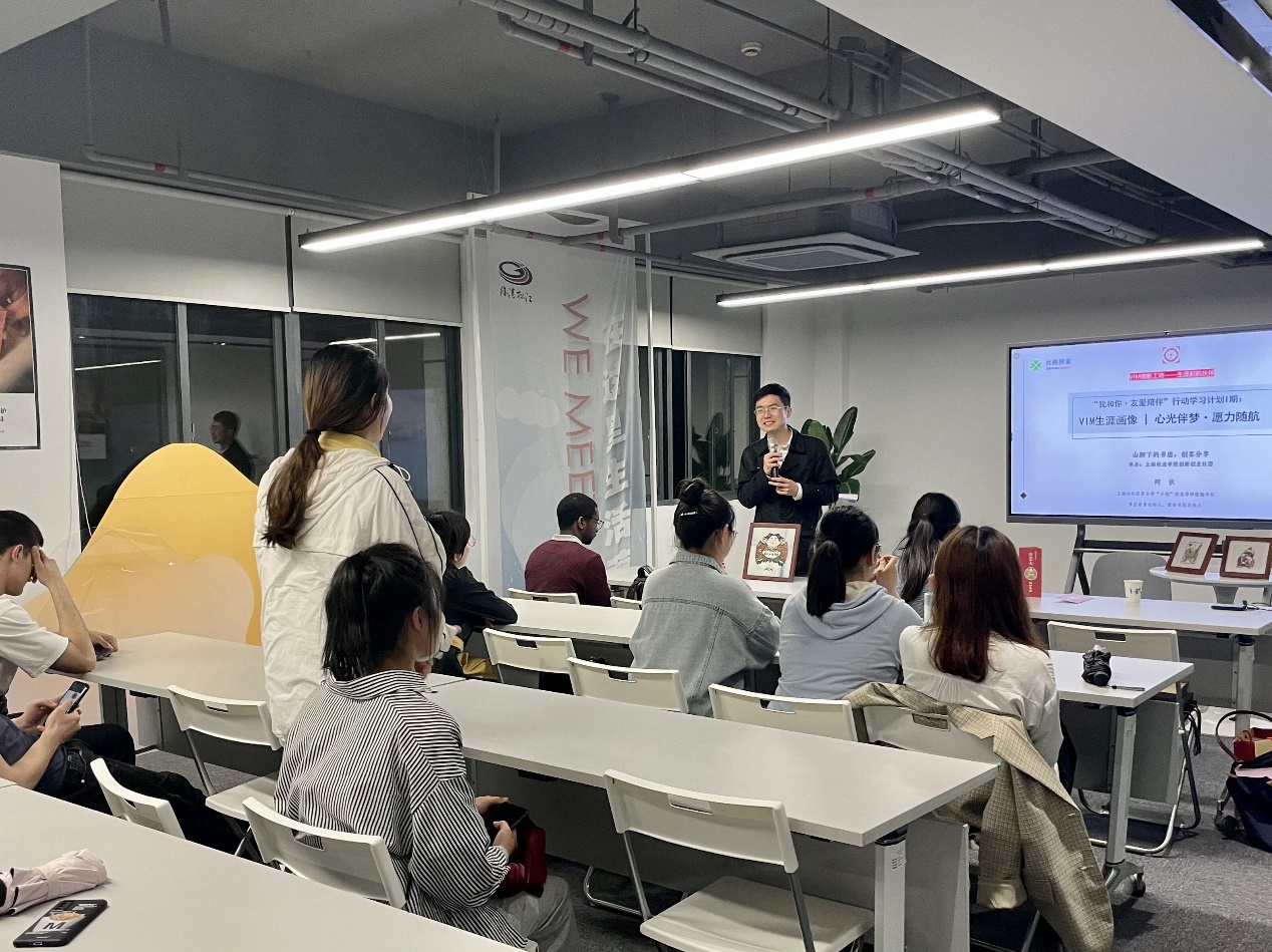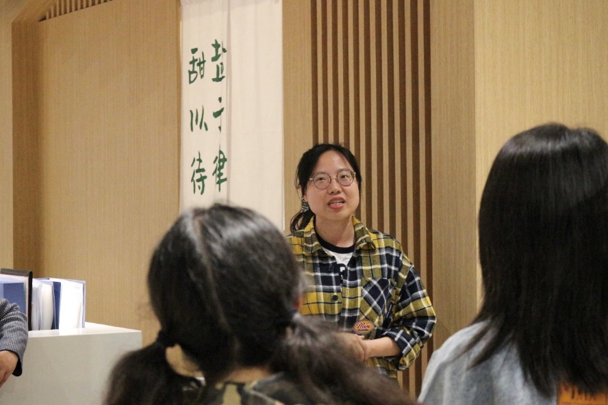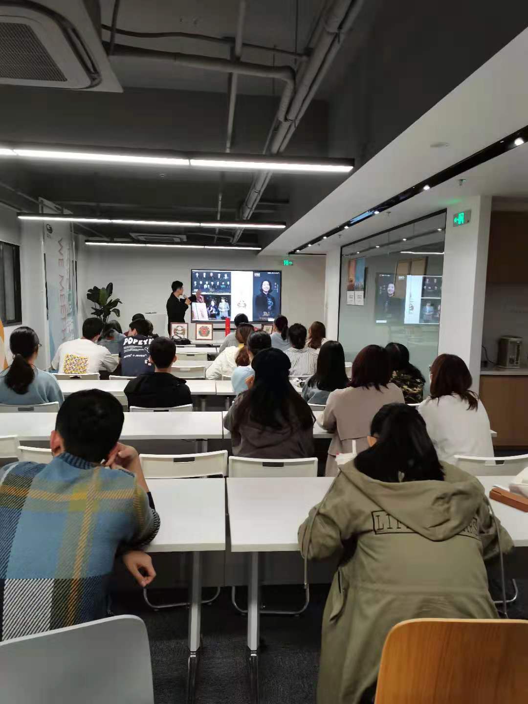 参观后,我们正式开启了“明秀佘山,创业领航”校际创新创业文化沙龙。在会上,阿秋老师用生动活泼的语言向大家介绍了自己创业的前世和今生——苏州桃花坞木板年画和VIM微影工坊。