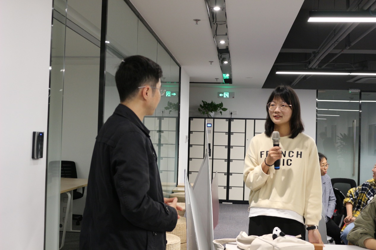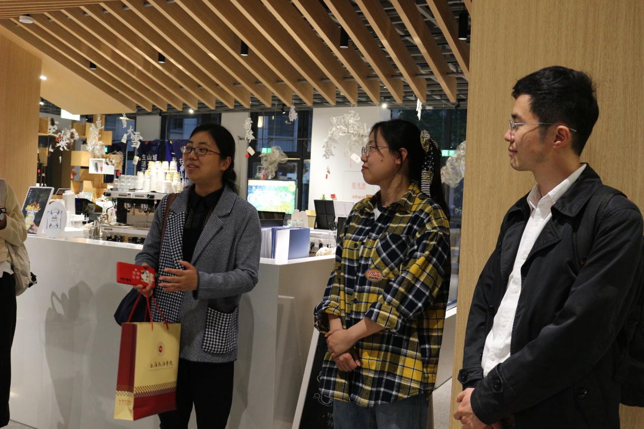 参观完一楼书店空间后,同学们来到四楼创业者联合办公空间,被正在进行的文化创业项目深深吸引,并与其中的创业者展开了热烈的交流。