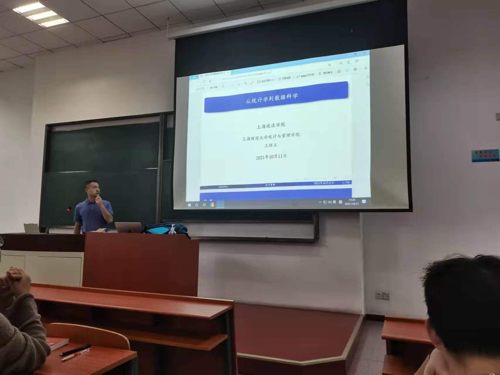 10月11日上午,我校佘山法商讲坛第十七讲在法学楼B4-105举行,上海财经大学统计与管理学院王绍立教授应邀赴新利18官方客服,为我校师生作题为“统计、信息、数据科学”学术讲座,约200多名学生和部分教师聆听了讲座。本次论坛由经济管理学院主办,研究生处协办。