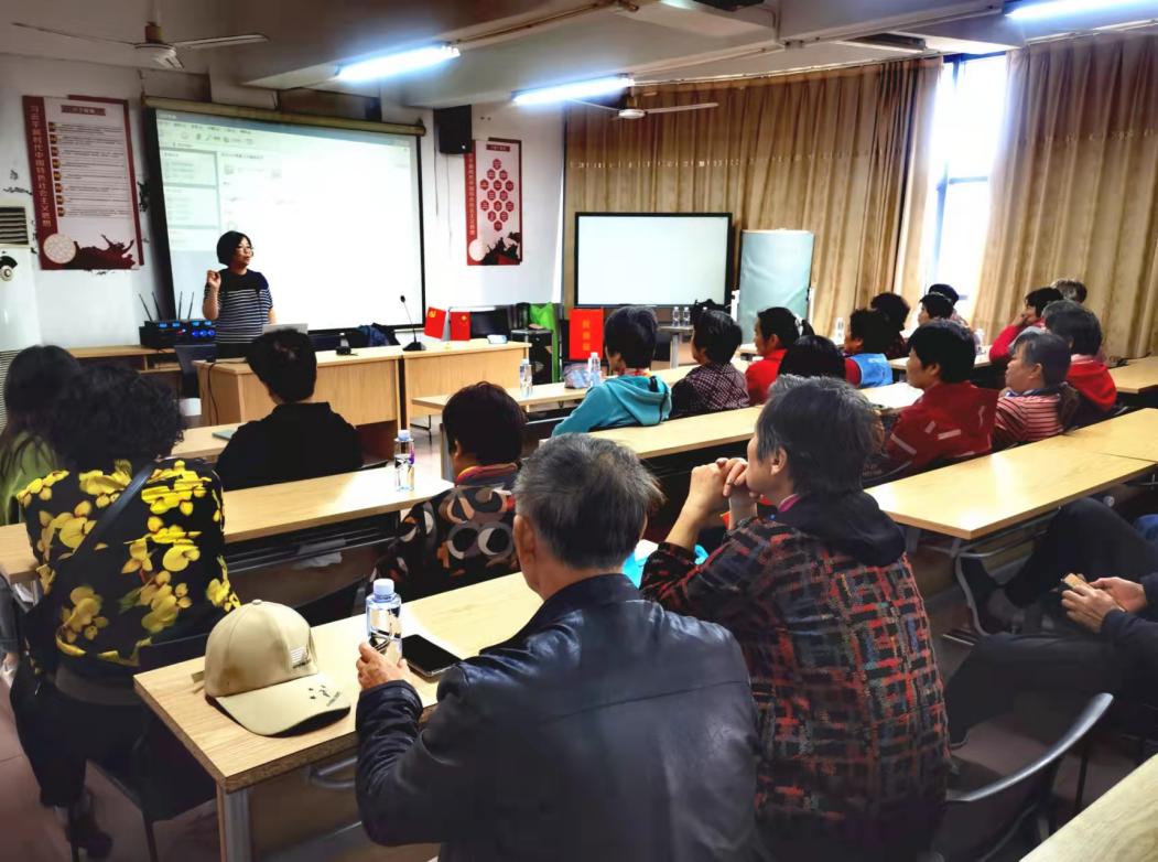 管理学支部黄慧老师为社区老人互动分享如何做好家庭理财、如何权衡风险与收益以及投资理财中应注意的事项。