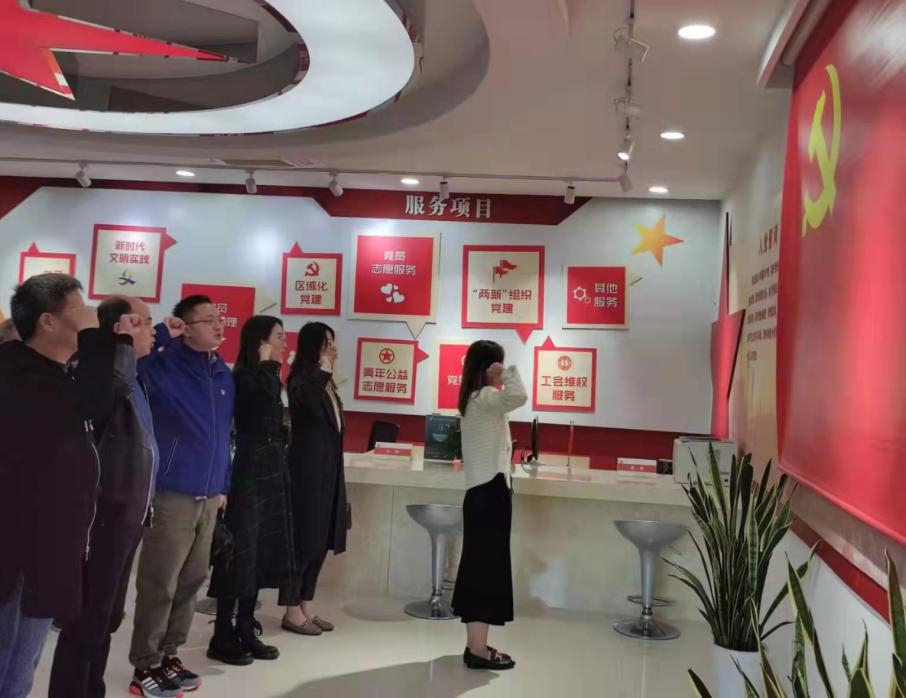活动最后,全体党员同志一同面向在党旗,重温入党誓词。鞭策激励大家回望来路、不忘初心、再启新程。