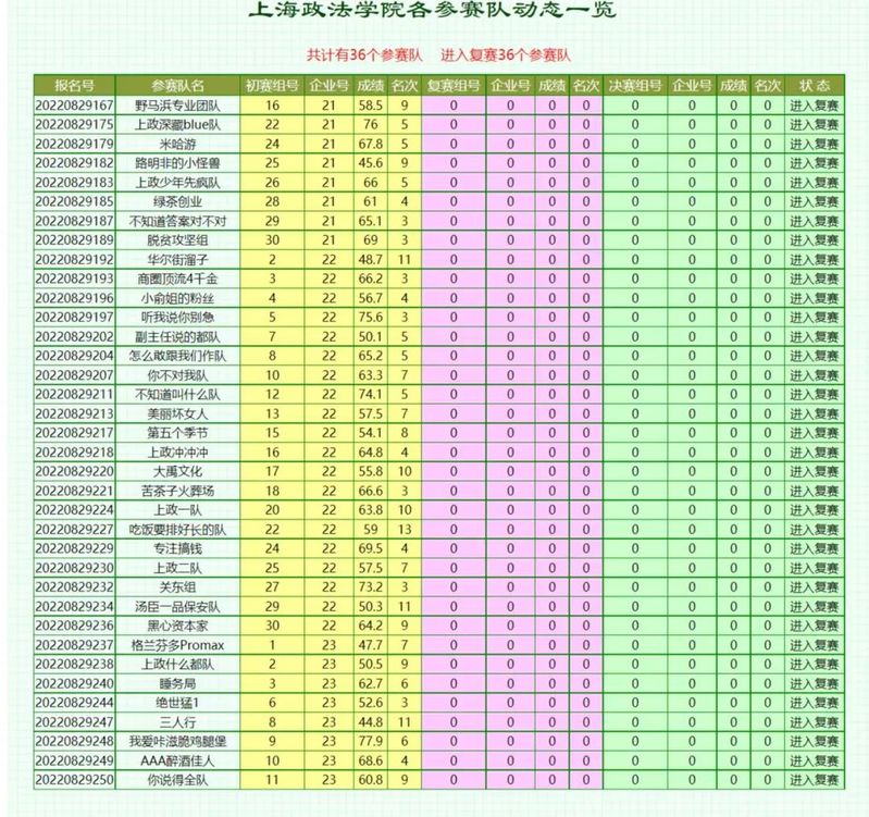 36支参赛队伍能够继续努力,稳定发挥,把握决策与精算,预祝同学们在复赛中收获更好的成绩!