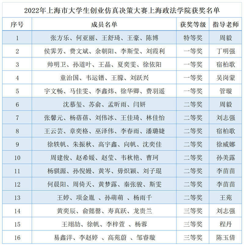 日前,由上海市教育委员会主办,东华大学承办的第九届上海市大学生创业决策仿真大赛正式落下帷幕,共有来自63所国内高校的677支队伍,2482人报名参加本届赛事。在教务处与经济管理学院的重视与支持下,我校共组织36支队伍参加比赛,经过激烈的市级初赛、复赛后,共有17支队伍成功进入决赛。决赛中,选手们沉着应战、势如破竹,一举斩获16个市级奖项,其中包括特等奖1个,一等奖4个、二等奖8个、三等奖3个,为我校历史最好成绩。