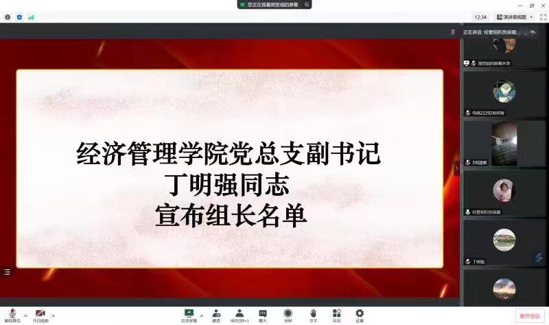 第四项,由经济管理学院党总支副书记丁明强同志宣读本次培训班的组长名单。