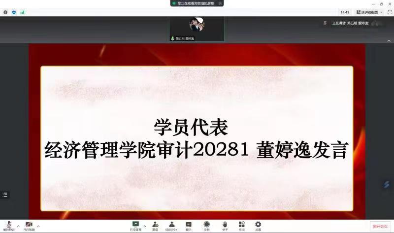 第三项,由经济管理学院党总支书记周毅同志做开班动员讲话。他在多个方面对培训班和各位学员提出了明确的目标、纪律和要求,希望大家能够夯实基础、增强学习,掌握好所必须的知识和本领。作为一名入党积极分子要成为学习的模范,不但要刻苦学习马克思主义理论,而且要学好专业知识,全面提升本领,力争早日成为一名光荣的共产党员并且深刻领会,提高认识,用二十大精神来武装自己的头脑。学习并贯彻好党的二十大报告精神,牢记空谈误国、实干兴邦,坚定信心、同心同德,埋头苦干、奋勇前进,为全面建设社会主义现代化国家、全面推进中华民族伟大复兴而团结奋斗。与此同时也要认清自我,查找差距,严格地用共产党员的标准来要求自己,努力向优秀的党员同志看齐,缩小差距,经受住党组织的考验。无论任何时候,无论遇到什么情况,都要始终坚信党的领导,认真执行党的各项方针、政策,毫不动摇地跟党走。
