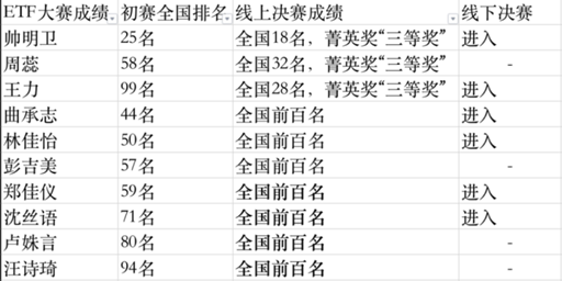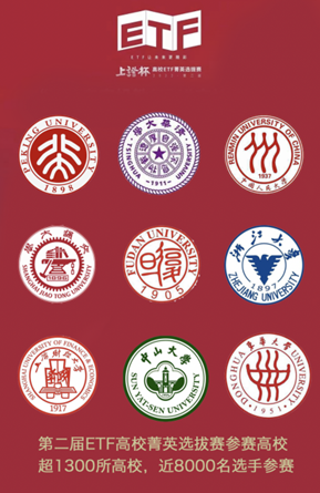 由上海证券交易所与上海证券报社主办,国泰基金、华夏基金、南方基金、易方达基金联合主办,中基协、多地证监局联合指导,国金证券等一批证券公司提供高校落地支持的“ETF高校菁英选拔赛”落下帷幕。活动吸引了国内外高水平大学如北京大学、清华大学、中国人民大学、复旦大学、上海交通大学、上海财经大学、浙江大学等延伸至全世界其他区域近1300所高校,近8000名学生参与本次赛事。