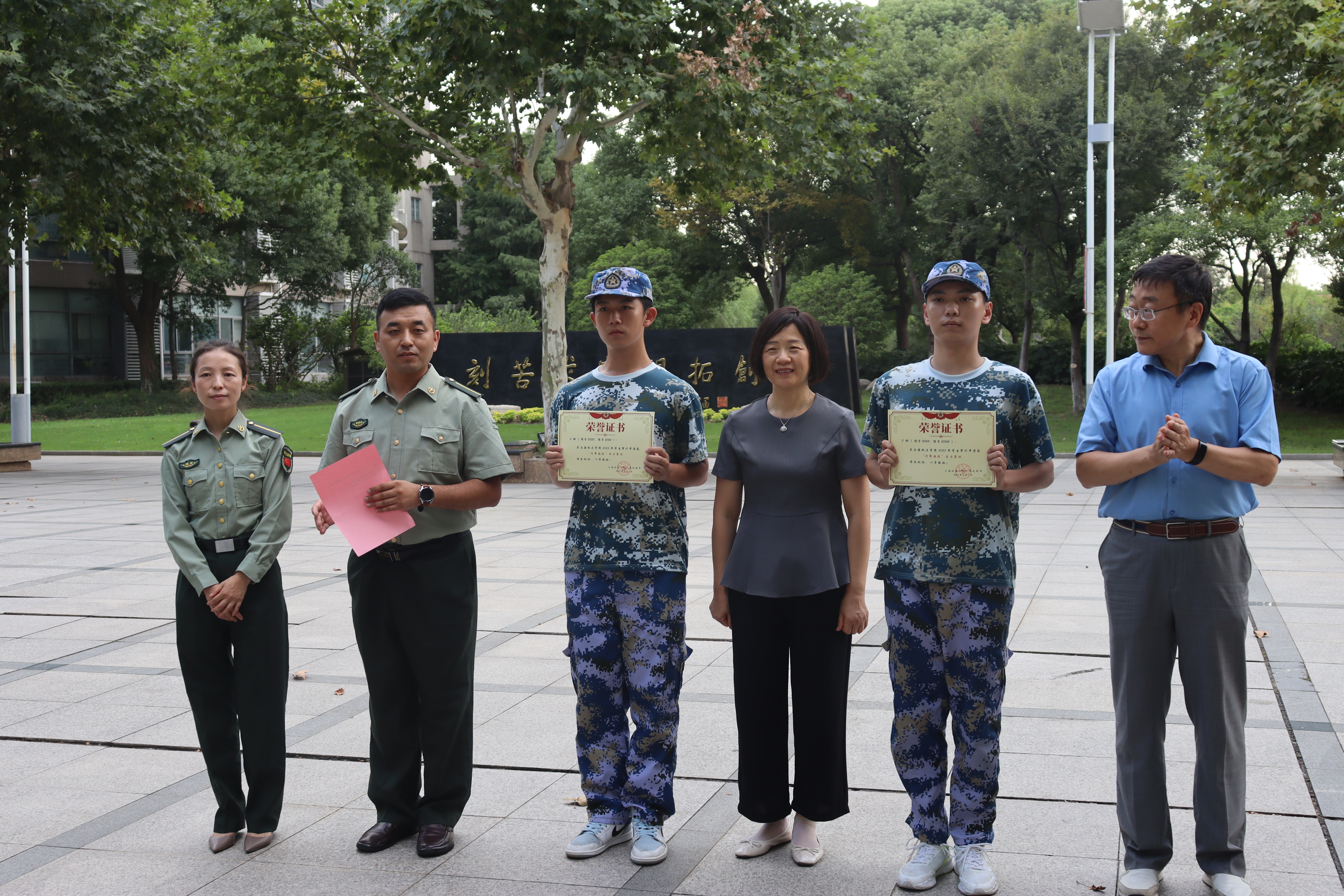 最后,校领导对表现出色的集体进行了颁奖。我院在军训行军拉练活动中,3 排和6 排获得军训行军拉练活力集体荣誉,4排和5排获得军训行军拉练优秀集体荣誉。校领导亲自为获奖集体颁发了荣誉证书,这是同学们的荣耀,更是对他们努力的认可和付出的激励。