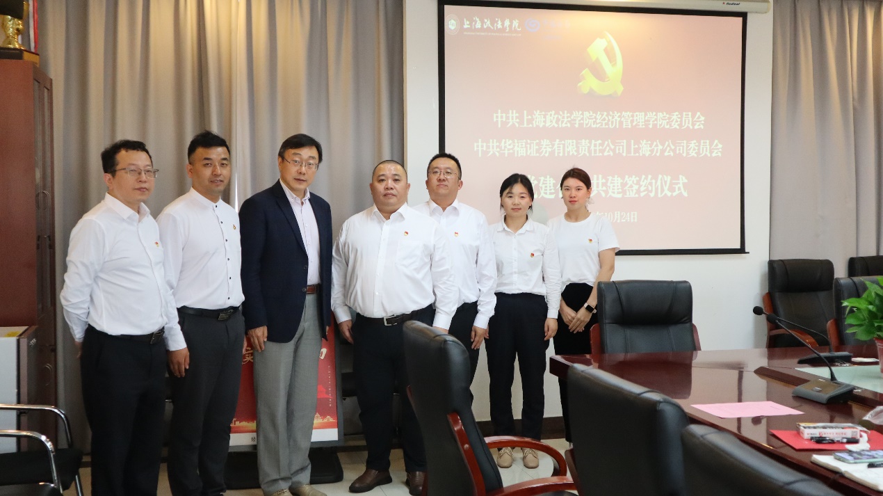 为进一步深入学习贯彻习近平新时代中国特色社会主义思想,用高质量党建引领事业新发展,推动校企合作跃上新台阶,10月24日下午,华福证券上海分公司一行赴新利18官方客服经济管理学院开展党建共建签约仪式。经济管理学院党委书记周毅,党委副书记、院长刘志强,党委副书记丁明强,华福证券上海分公司党委书记庄跃光,党委委员、纪委书记陈文杰,纪委委员、第二党支部书记夏伟杰及双方党员代表共同出席此次签约仪式。签约仪式由丁明强主持。