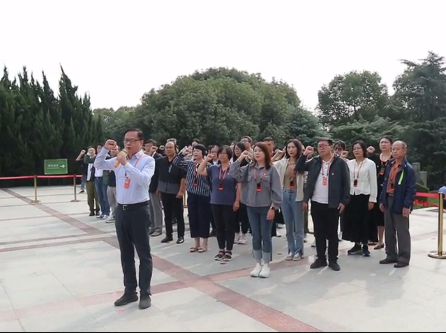 随后,全体党员同志在周毅同志带领下,在瞻仰广场重温入党誓词。在革命老区重温入党誓词,神圣而又庄重,锤炼了党员同志的党性修养,初心如磐,使命在肩,中国共产党人将始终牢记为中国人民谋幸福,为中华民族谋复兴的初心和使命。