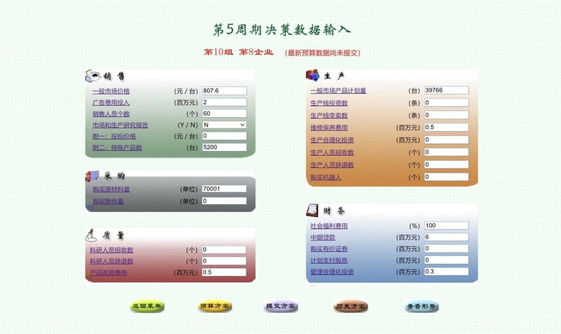 这项比赛主要面向经济管理类专业学生开展,学生团队通过大型互联网平台“国家级管理决策虚拟仿真实验平台”,在平台设定的一个完整的现代的企业创业决策情境中,运用企业营销、生产、采购、人事、财务等决策分析方法,进行创业管理决策。