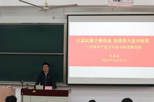 开班典礼结束后,法律学院党委专职组织员李虎成为学员讲授入党培训第一课——中国共产党百年奋斗的光辉历程,强调青年要学习党史,赓续红色血脉,担当责任,为中华民族伟大复兴不懈奋斗。