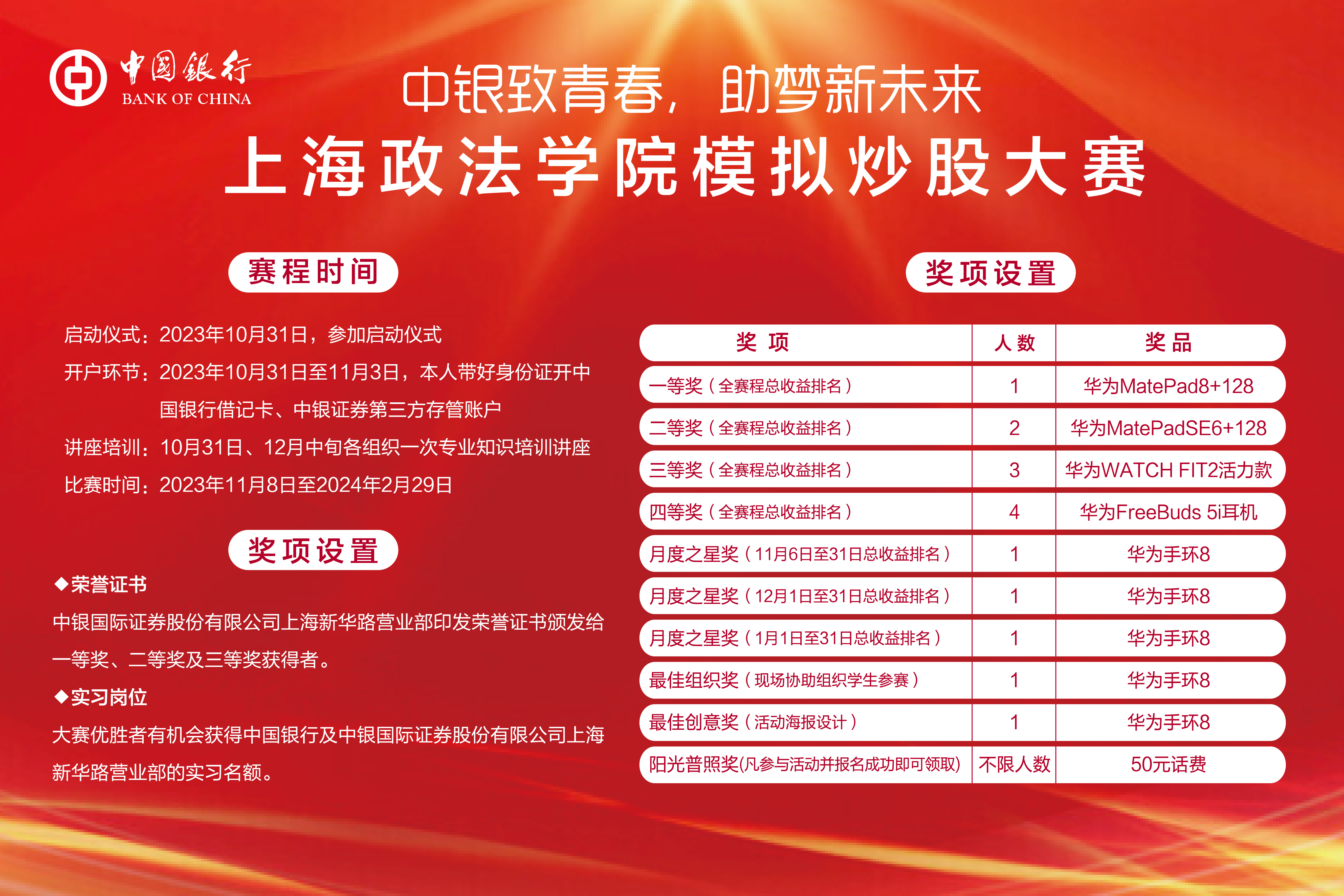 为推动我校学生金融知识与财商能力的融合联动,实现应用型人才培养的实践能力与综合能力的提升。12月12日下午,由中银证券与经济管理学院合作举办的“中银致青春,筑梦新未来”模拟炒股大赛启动仪式于我校综合研究中心107召开。经济管理学院党委副书记丁明强、中国银行上海长三角一体化示范区分行副行长范筠、中银证券投资顾问李毅飞及100余位学生代表出席启动仪式。