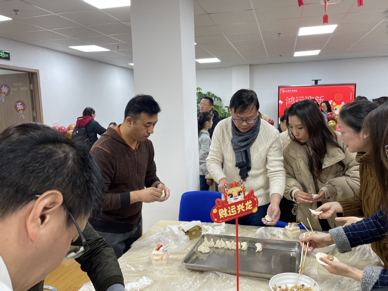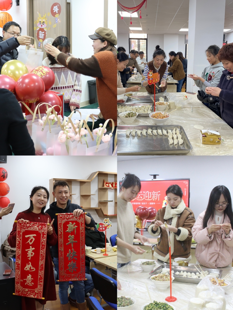 2023年12月26日中午,在2024元旦即将来临之际,经济管理学院工会在E10-203特别策划了一场包饺子迎新年活动暨李强教授荣休仪式。全体教职工共同参加,并邀请了经管学院合作单位中国银行、工商银行和万联证券的领导共享欢乐时光。
