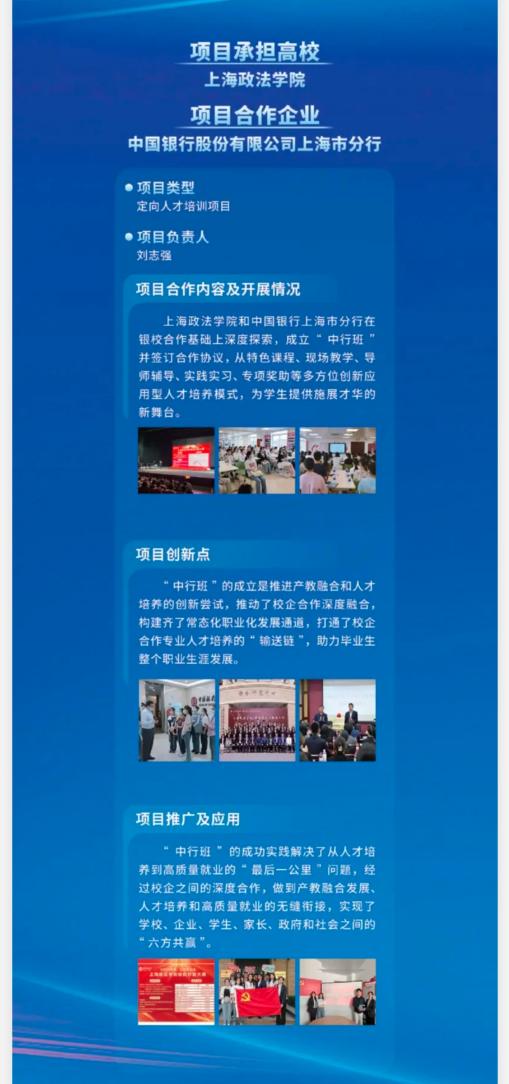 我校与中国银行上海市分行共同申报的2021年教育部供需对接就业育人项目(第一批)《新利18官方客服定向人才培养-就业育人一体化项目》获评优秀案例,并在大会中进行了展出,吸引了众多高校、企业和媒体的关注。该项目也是全国金融行业唯一入选项目,充分彰显了我校应用型人才培养的水平和成果。