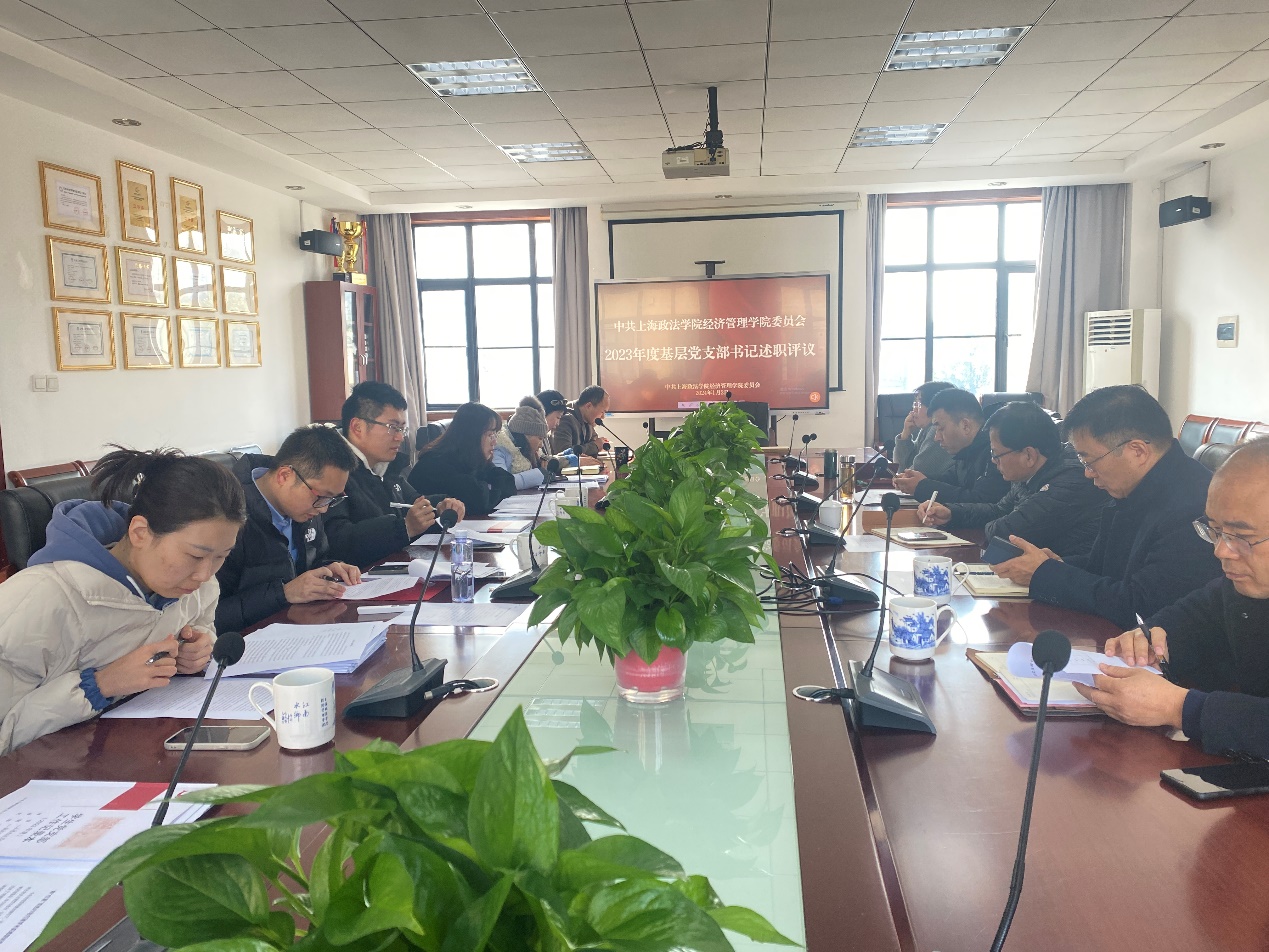 1月2日新年伊始,经济管理学院党委在A3-201会议室召开2023年度党支部书记抓基层党建述职评议会,经济管理学院党委班子全体成员、各基层党支部书记、专职组织员参会。会议由党委书记周毅主持。
